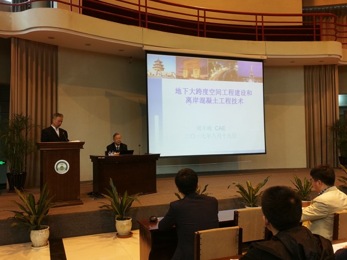 9月27日,周丰峻院士在我校学术中心作《国际大型地下空间结构隧道工程建设和待机阵地工程构建技术》学术报告。建筑工程学院全体教师及硕士研究生出席学术报告会。建筑工程学院院长鞠彦忠教授主持报告会。周丰峻院士就国际大型地下空间结构隧道工程建设前沿、离岸混凝土发展应用情况和待机阵地工程构建技术三方面做了系统、详细的介绍。在场师生就地下交通管廊建设、高性能混凝土研发情况等国际热点学术问题与周丰峻院士开展了交流,周丰峻院士对师生提出的问题给予了细致解答。