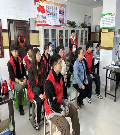 志愿者们上午10点在十二舍楼下集合开始分配任务,分工明确后,志愿者们开始组织前往锦绣社区,到达社区后与社区工作人员对接,提前布置会场,有序开展服务工作。