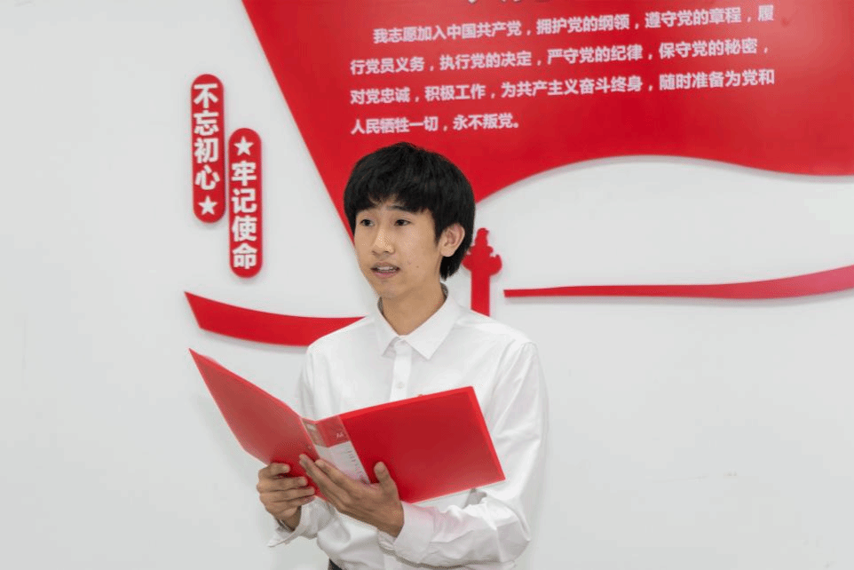 活动首先由教工党员为新发展党员佩戴党徽,学院党委班子成员、教工党员逐一为新发展党员佩戴党徽,并细心整理,以庄严而温暖的方式传递党的光荣传统与责任担当。输电卓越231班任轩辕同学作为新发展党员代表发言,要发挥好党员的先锋模范作用勇于开拓创新,锤炼过硬作风,严守纪律,以身作则,将先锋模范作用融入日常,凝聚青年力量,助力民族复兴。最后,在领誓人李杰同志的带领下,全体党员面向党旗庄严宣誓,重温入党誓词。
