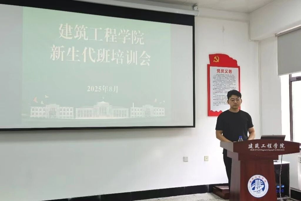 为全面提升2025级新生代班的综合素养与工作能力,确保2025级新生入学工作有序、高效开展,充分发挥代班的桥梁纽带和榜样引领作用,帮助新生尽快适应大学生活,建筑工程学院于8月24日,在三教D座423召开了2025级新生代班培训会。本次培训旨在明确代班职责,强化服务意识,传授工作方法,打造一支责任心强、能力突出的代班队伍。