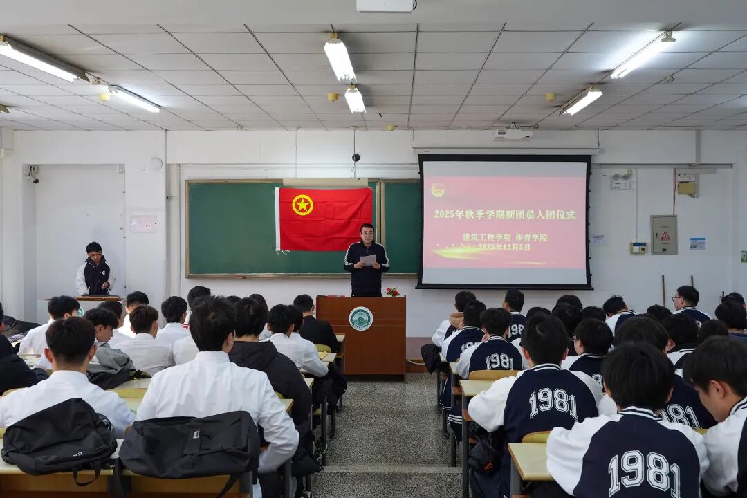 为加强基层团组织建设,凝聚青春力量,12月5日中午,建筑工程学院与体育学院联合举办的2025年秋季学期新团员入团仪式。建筑工程学院团委副书记肖建磊老师、体育学院学生工作办公室副主任兼团委副书记王照旭老师以及新发展团员参加本次活动。