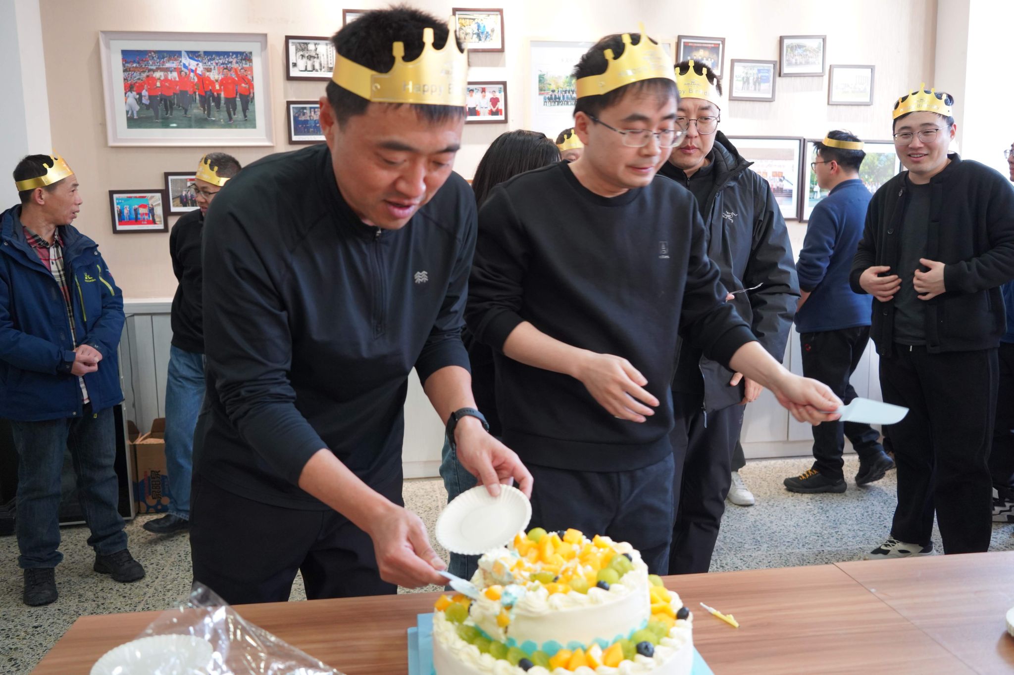 随后,学院领导班子与工会委员为过生日老师们佩戴生日帽,全体齐唱生日歌。在温馨烛光与悠扬旋律中,老师们共同许愿、分享蛋糕,现场洋溢着欢声笑语,凝聚着集体温情。