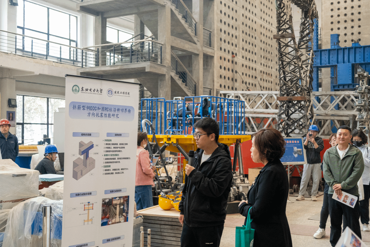 学术分享环节以聚焦建筑防灾技术创新为重点开展。学院研究生代表分别围绕“装配整体式节点抗震性能研究”和“既有建筑结构新型加固技术”,剖析高性能材料和装配式结构对建筑韧性提升的效果,为老旧建筑的韧性提升改造提供可行性技术方案。