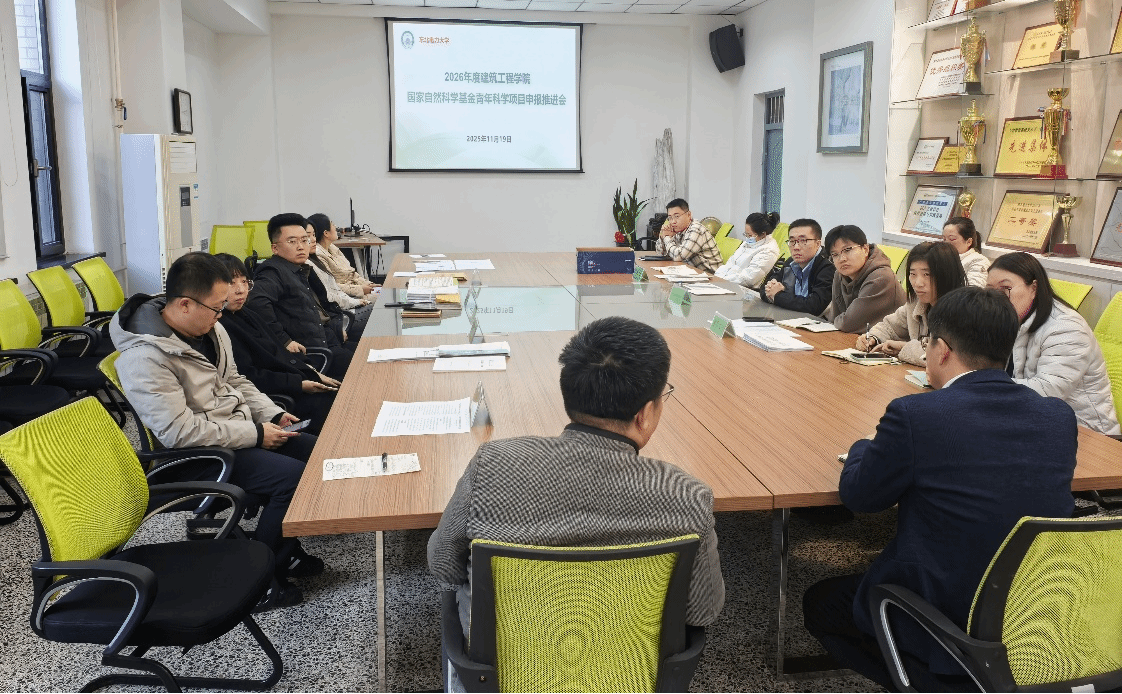 为扎实推进2026年度国家自然科学基金项目申报工作,,进一步提升申报质量与立项率,11月19日,建筑工程学院D519会议室举行了国家自然科学基金青年科学项目申报推进会。学院院长曾聪、副院长王德弘以及15名青年教师共同参会。会议由王德弘副院长主持。